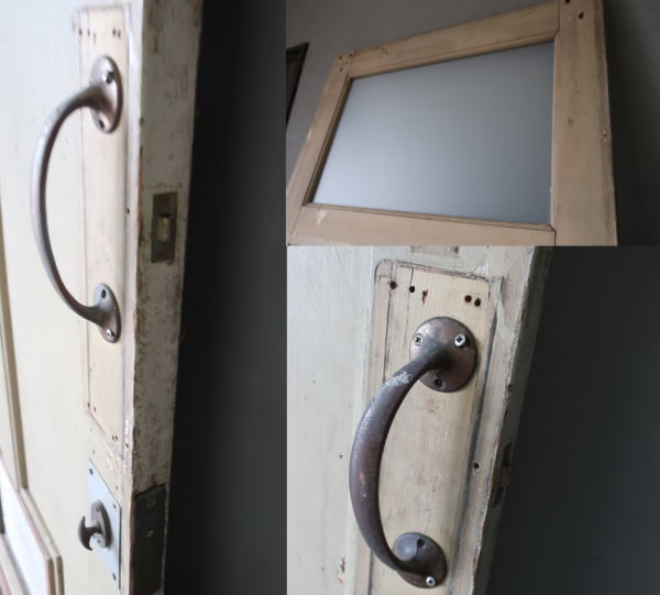 | ドア内容 | ・こちらのドアは店舗見本で 使用していたアメリカアンティークのドアです ご注文・ご入金頂けましたら 即日お渡し可能なため 通常製作にかかる日数がなく お急ぎの方には 最適なドアです。 ・ガラス(すりガラス) 兆番(3か所) ドアハンドル シリンダー錠(2ヵ所)など 一式付いたドアなので このままでのご利用が可能です。 但しシリンダー錠の鍵はありませんので 内側からのロックのみでのご利用となります。 外部使用など シリンダー錠が必要な場合は 鍵部のみ新しいものに交換してご利用ください。 ドアクローザーは付属していませんので 必要な場合は現地でご用意下さい。 ・こちらの商品は お支払方法が銀行振り込み ・またはクレジット決済(メール告知決済)のみ 対応の商品となります。 ・ガラスが多いアンティークドアで 配送での破損の恐れがある為 店舗でのお渡しのみとなります。 ・アンティーク商品の為 ノークレーム・ノーリターンにてお願い致します。 その他ご不明な点 ご希望の事柄などございましたら お気軽にスタッフまで お問い合わせください |