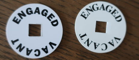 「使用中」「空室」がひと目でわかるサイン付きの表示錠です。